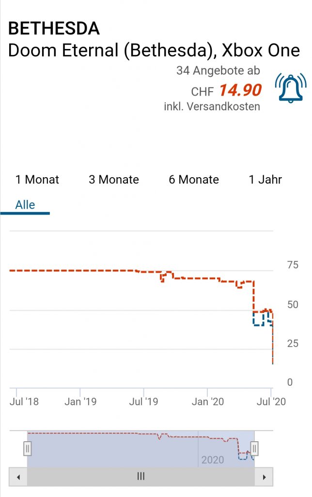 Bei digitec gibts derzeit die Disc-Version des Spiels Doom Eternal zum neuen Bestpreis von CHF 14.90 inkl. Versand. Laut toppreise beträgt der zweitbeste Preis z.B. für die Xbox One ca. 48 Franken. Aus meiner Sicht ein sehr guter Deal, zumal die Lieferung komplett kostenlos ist.