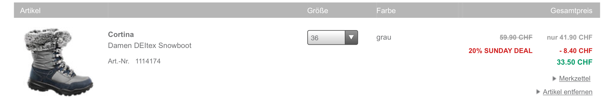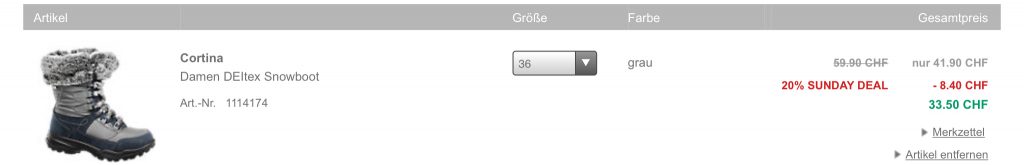 Bei Dosenbach gibt es nur heute zusätzliche 20% Rabatt auf bereits reduzierte Artikel
