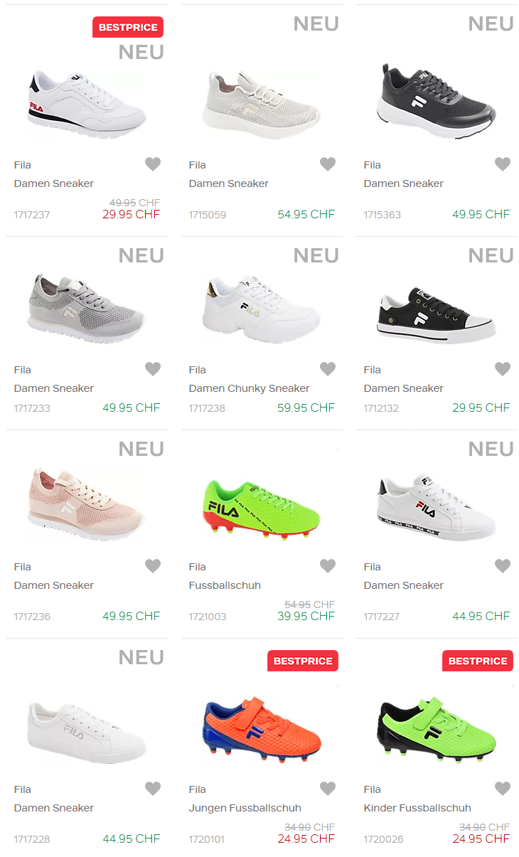 Bei Dosenbach gibt es nur Heute auf viele Artikel einen Rabatt von 50% auf Artikel der Marke Fila. So gibt es einige echte Schnäppchen, unten ein paar Beispiele.