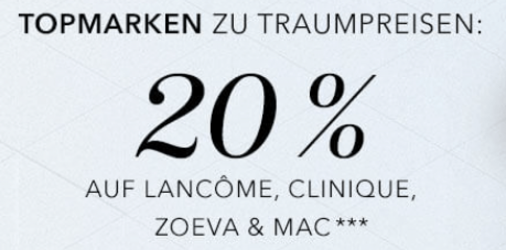 Bei Douglas bekommt ihr diese Woche 20% auf die Marken Lancome, Clinique, Zoeva & MAC mit dem Gutscheincode TOP20.