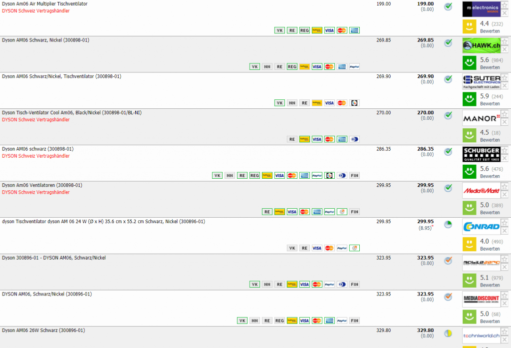 Bei melectronics gibt’s momentan den Dyson AM06 zu einem sehr guten Preis, gültig bis am 23. Juli. Der zweitbeste Preis für die schwarze Version liegt bei CHF 269.85, die weisse Version kann man momentan bei microspot für CHF 198.- kaufen. Günstiger als CHF 189.90 gab’s den Dyson AM06 in der Schweiz noch nie.