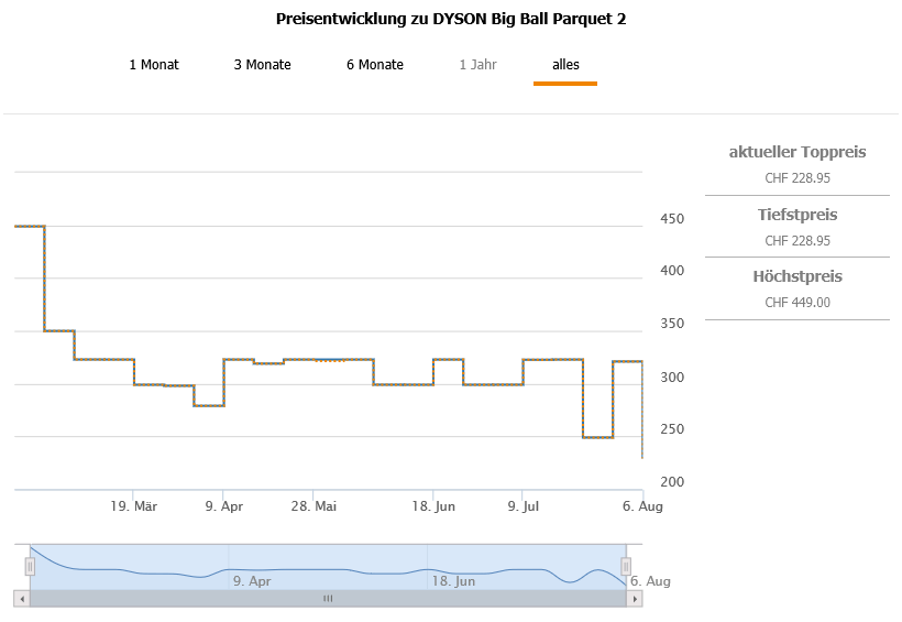 Günstiger als für 248.95 CHF gab es das Gerät gemäss toppreise bislang noch nie, der zweitbeste Preis liegt aktuell bei 349.- CHF.