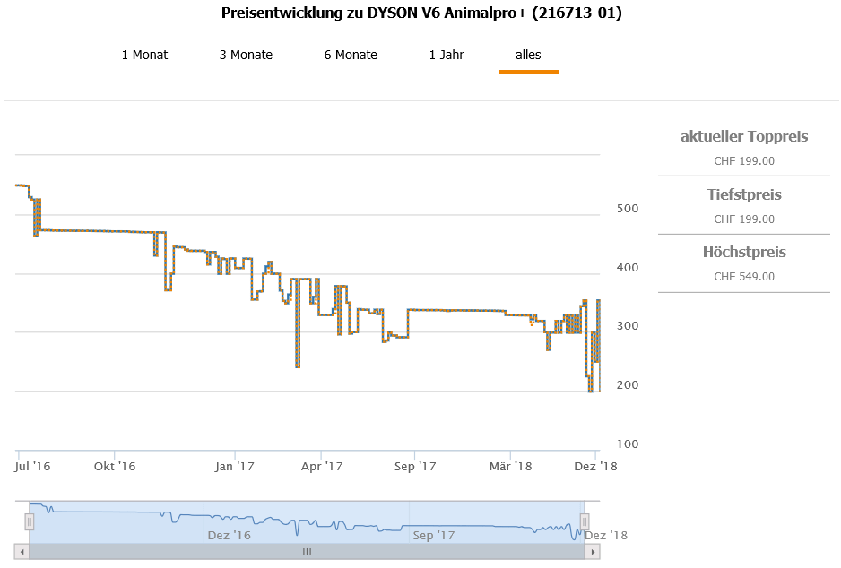 DYSON V6 Animalpro+ gibt es wieder zu guten preis. Zweit bester preis ist 349.90 CHF.