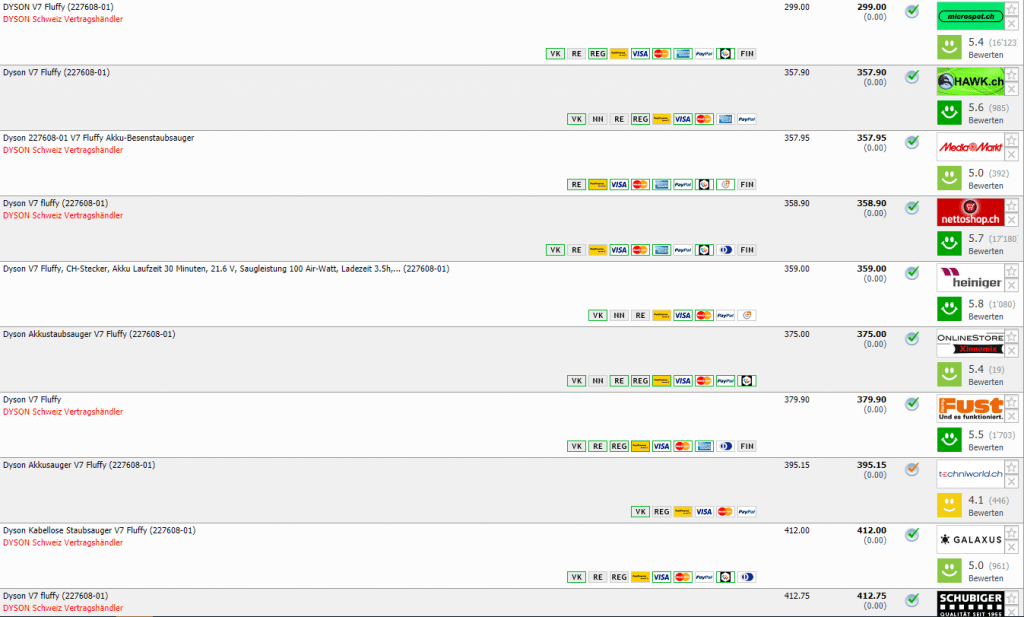Mit dem Gutscheincode HFWMSP20 erhältst du den Dyson V7 Fluffy für CHF 279.- Der zweitbeste Preis in der Schweiz beträgt CHF 357.90, günstiger als CHF 299.- gab’s den V7 Fluffy noch nie.