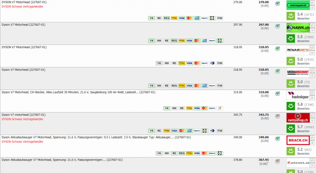 Bei microspot gibt’s gerade den DYSON V7 Motorhead zum neuen Bestpreis von CHF 259.- wenn man den Gutscheincode HFWMSP20 beim Checkout eingibt. Zweitbester Preis in der Schweiz liegt im Moment bei CHF 297.90 und dann geht der Preis schnell hoch. Interdiscount verlangt für das exakt gleiche Modell zum Beispiel CHF 399.90