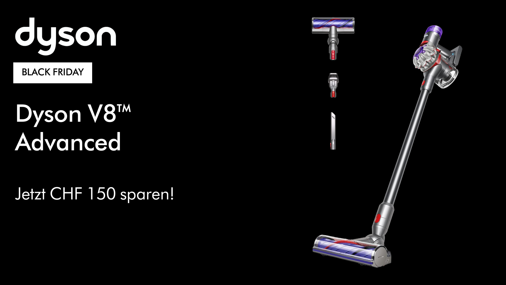 Sichere dir jetzt CHF 150 Preisvorteil auf Dyson V8 Advanced! Leistungsstark, vielseitig einsetzbar und leise.