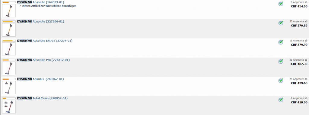 Am meisten lohnt sich bei diesem Preis der Kauf des Dyson V8 Total Clean. Dieser hat das meiste Zubehör mit dabei.