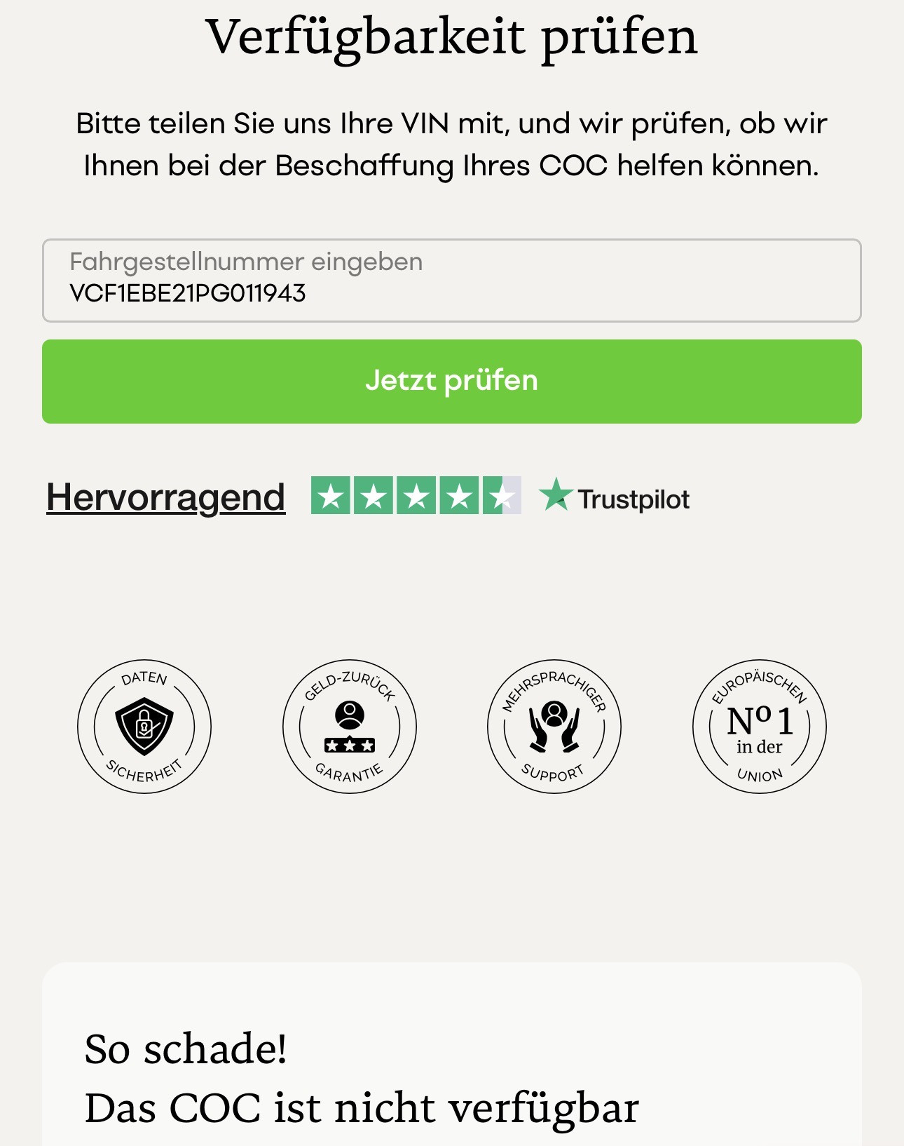 also ich hab jetzt mal im Internet geschaut wegen CoC nachbestellen und die meisten Seiten sagen bei den Fahrzeugen aus der Auktion wo kein Fz-Ausweis und kein CoC vorhanden ist: