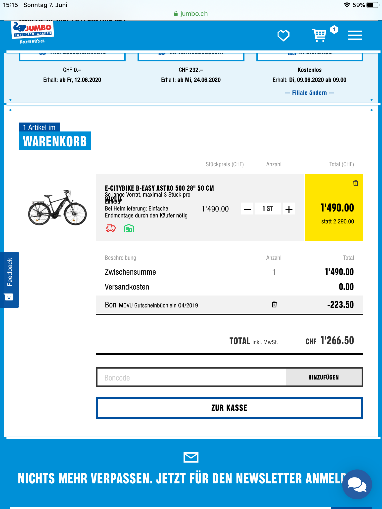 Man kann den 15% Gutscheincode gemäss einigen user auch im Store einlösen. Jedoch kann ich dies nicht bestätigen.