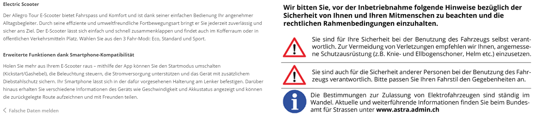 Im Blickdeal der Woche gibts ab heute den E-Scooter Allegro Tour mit Schweizer Strassenzulassung dank der Höchstgeschwindigkeit von 20km/h zum Aktionspreis von 599 Franken. Laut toppreise ist Brack der einzige Anbieter, bei Google Shopping ist der Roller aber noch bei Coop bau+hobby für 799 Franken gelistet.