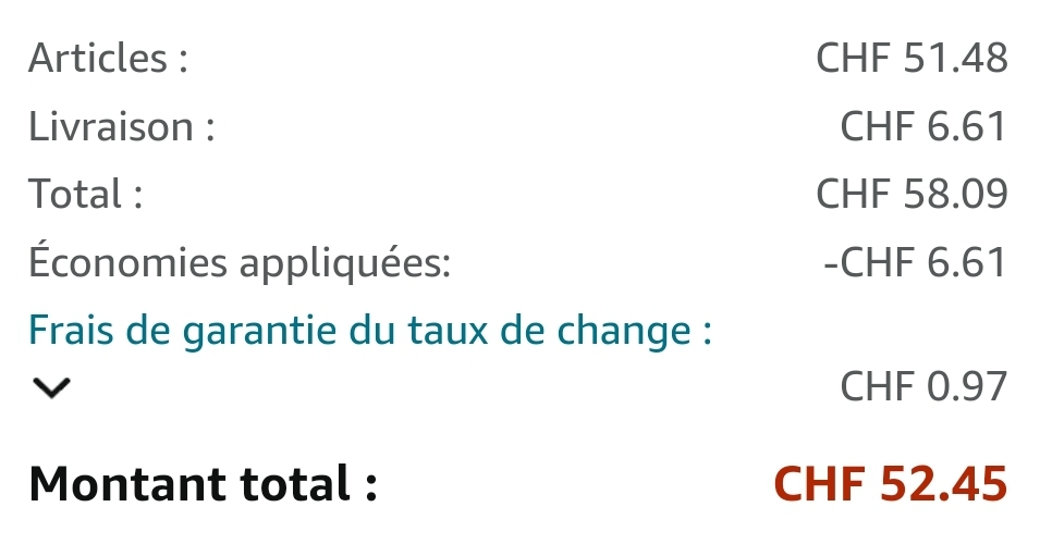 - Für Lieferungen in die Schweiz wird der Preis erst bei Angabe einer Schweizer Lieferadresse richtig angezeigt (Abzug der Mehrwertsteuer, zuzüglich Versandkosten) resp. beim Checkout an der Kasse (Amazon Frankreich, Italien, Spanien und Grossbritannien). Wir verwenden grundsätzlich den Interbanken-Kurs für die Umrechnung in CHF.