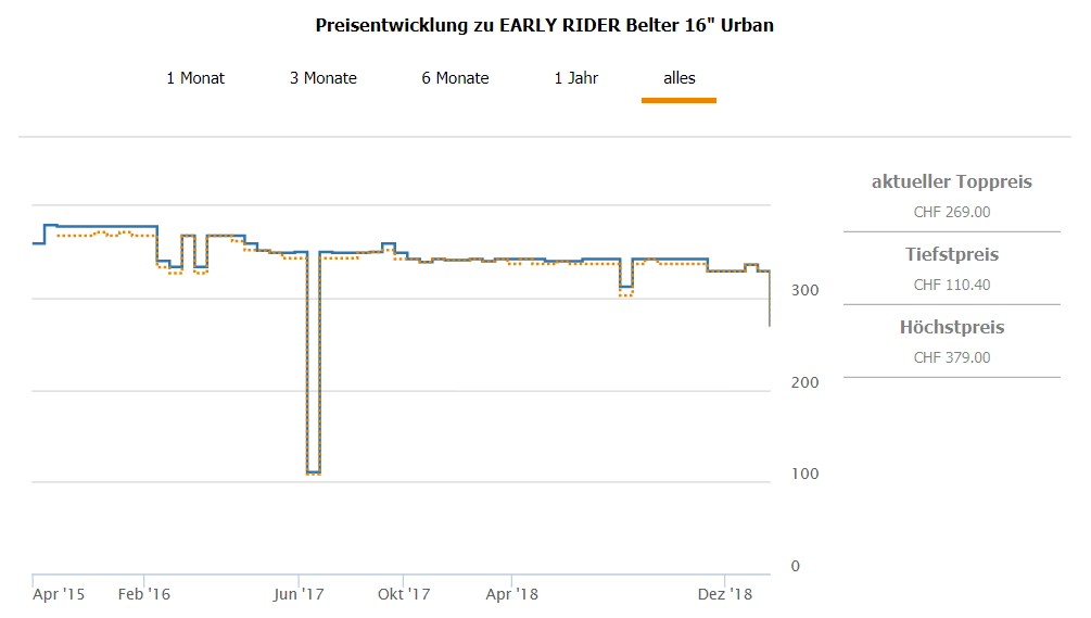 Bei Galaxus bekommt man gerade das sehr leichte Kindervelo Early Rider Belter Urban (16″) für CHF 269.- Der zweitbeste Preis in der Schweiz beträgt CHF 329.- Bis auf einen Preisfehler war der Bestpreis bisher bei CHF 302.-