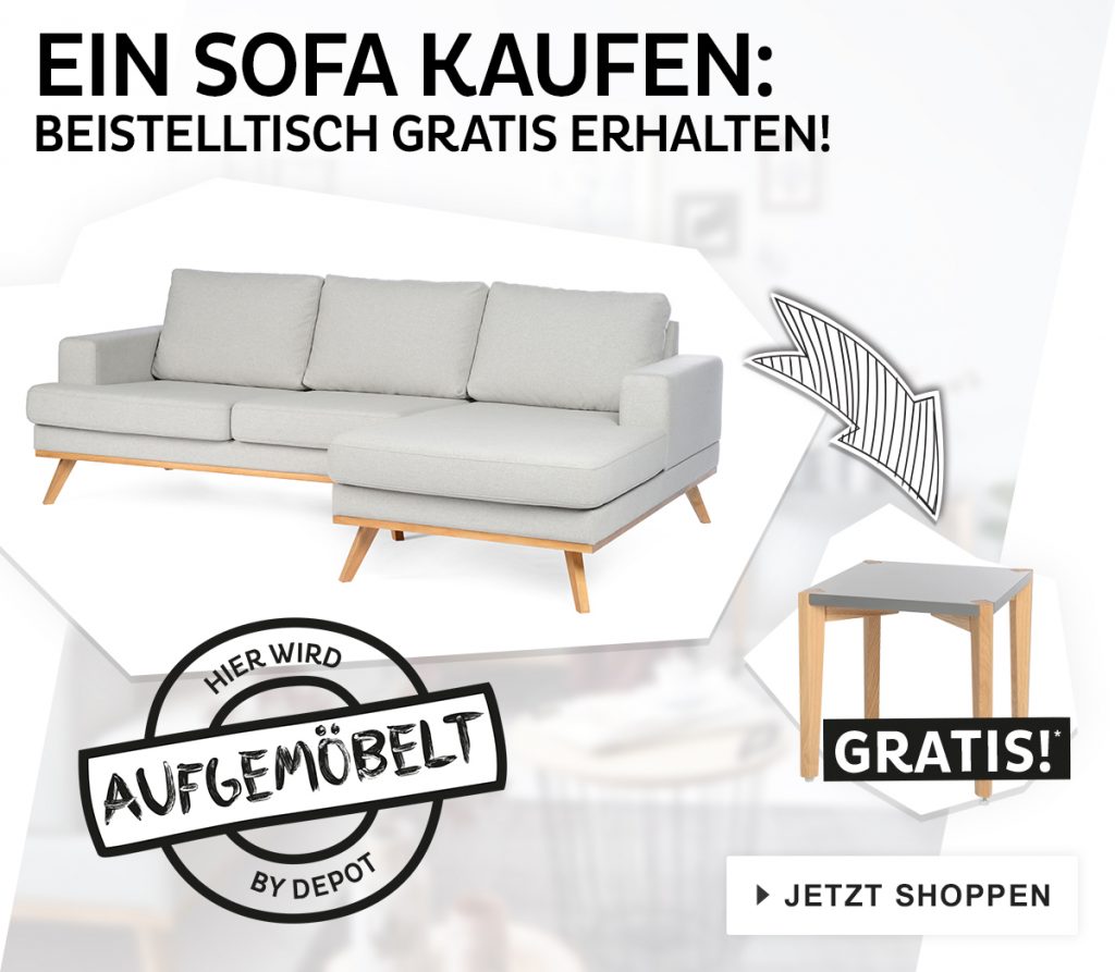 Depot hat aktuell eine Aktion, bei der du zum Ecksofa mit der Artikelnummer AAC0046773 gratis den Beistelltisch mit der Artikelnummer VHV0013770 bekommst. Du brauchst keinen Gutscheincode, um von dieser Aktion zu profitieren. Depot gibt seine Preise auf der Website nur in Euro an. Die Couch kostet 799€ und der Beistelltisch würde, wenn du ihn einzeln bestellst, 39,90€ kosten. Da Depot aber auch Filialen in der Schweiz hat, darf man davon ausgehen, dass der Versand aus der Schweiz erfolgt und du daher keine Zollkosten zu zahlen hast. Ausserdem kannst du von der Aktion auch in der Filiale profitieren. Sie läuft noch bis einschliesslich Montag, den 25. September.