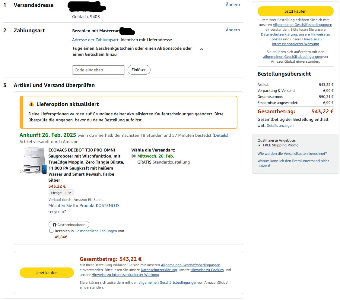 Wahrscheinlich, weil Amazon Business Konto statt Amazon privat?