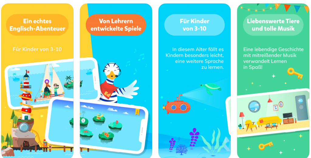 Eduka’s World, Englisch für Kinder von 3–10 Jahren, ist eine lustige und sichere Lernerfahrung, mit der Dein Kind Englisch lernt, während es auf ein Bildungsabenteuer mit unseren Charakteren Ed, U und Ka geht. Kinder lernen durch Emotionen. Deshalb haben wir Bildungsinhalte in eine fesselnde Geschichte mit einzigartiger Musik gepackt. Unsere Englisch-Lern-App ist für Kinder von 3–10 Jahren und vermittelt die englische Aussprache, Grammatik, Schreiben und vieles mehr.