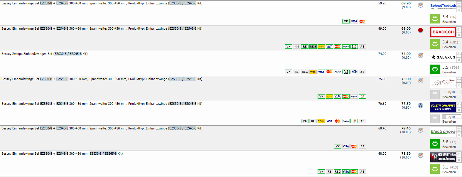 Im DayDeal gibt’s heute das Einhandzwingen-Set Bessey EZS30-8 + EZS45-8 für nur CHF 49.-. Eine Preischart konnten wir nicht finden, aber toppreise.ch listet als Vergleichspreis CHF 68.90. Der Deal gilt bis morgen früh, Sonntag, um 9 Uhr.