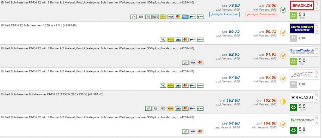 Bei Brack gibt es den Einhell Bohrhammer RT-RH 32 für den neuen Bestpreis von CHF 79.-. Der vorherige Bestpreis und auch zweitbeste Preis beträgt CHF 86.75.