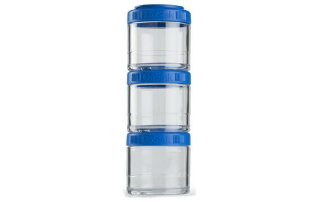 Blender Bottle GoStaks sind langlebige, ineinandergreifende Container, die den sicheren Transport von Nahrungsergänzungsmitteln, Vitaminen, Pulvern und Snacks ermöglichen. Die GoStaks sind klein und genau auf Ihren Bedarf angepasst, so nehmen Sie nur so viel mit, wie Sie unterwegs brauchen. Dank des Twist `n`Lock Systems können Sie die Behälter sicher verschliessen und ineinander stecken, wodurch Sie sehr viel Platz sparen können. Die Container sind zudem so geformt, dass sie mit jedem Blender Bottle Classic und SportMixer kompatibel sind. Die GoStaks sind frei von Bisphenol A, Phthalaten und sind spülmaschinenfest. Dieses Set enthält drei Behälter zu je 100 ml.