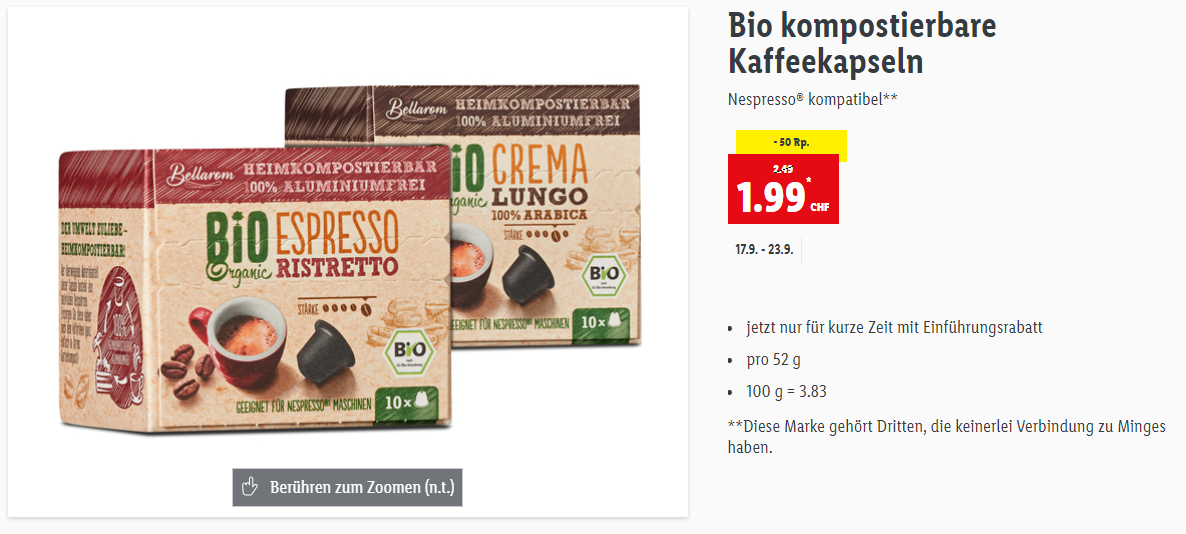 Auch ein gutes Schnäppchen Bio Bellarom Kaffee für 19 Rappen pro Kapsel
