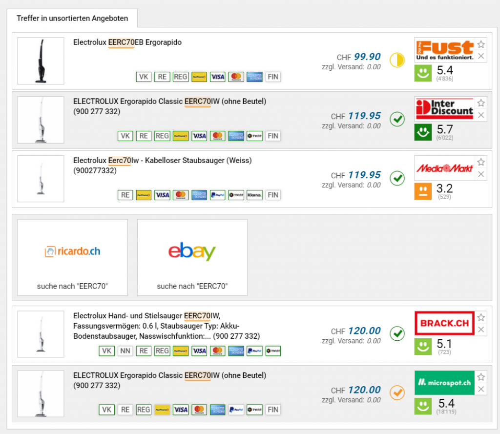 Bei nettoshop gibts derzeit den Staubsauger EERC70 von Electrolux mithilfe eines Warenkorbfüllers, z.B. diese Schutzhülle für CHF 81.90 (unter Anwendung des bekannten Bons).
