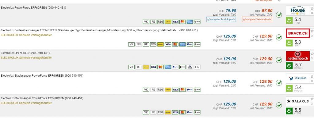 Bei houseware gibt es den Electrolux PowerForce EPF6GREEN für den neuen Bestpreis von CHF 87.80. Der vorherige Bestpreis war CHF 128.75. Der zweitbeste Preis beträgt CHF 129.-.