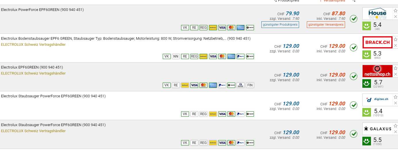 Bei houseware gibt es den Electrolux PowerForce EPF6GREEN für den neuen Bestpreis von CHF 87.80. Der vorherige Bestpreis war CHF 128.75. Der zweitbeste Preis beträgt CHF 129.-.