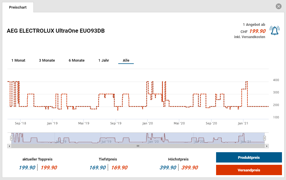 Dieser Staubsauger wird momentan 50 % günstiger angeboten und kostet nun noch knapp CHF 200.-. Der Originalpreis von CHF 400.- erachte ich als deutlich überzogen, aber der reduzierte Preis kann sich sehen lassen.