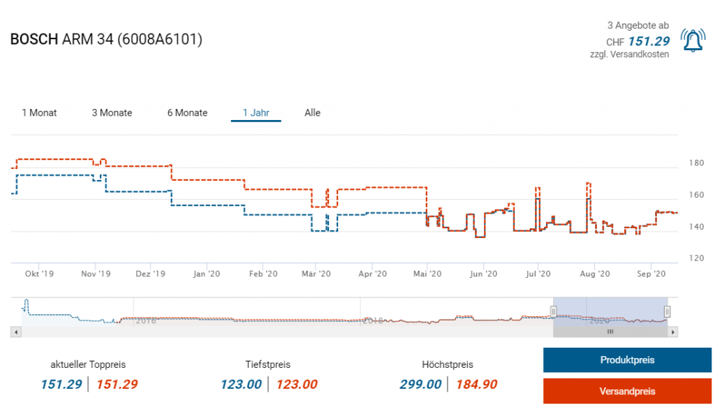Bei Amazon gibts derzeit den Rasenmäher ARM 34 von Bosch zum Aktionspreis von 86 Franken. Laut toppreise starten die Preise in der Schweiz bei 151 Franken.