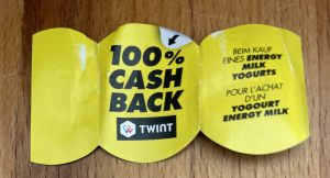 Bei gewissen Sorten von Emmi ENERGY MILK High Protein Yogurt gibt es ein Cashback über Twint. Die Aktion gilt nur für Yogurts mit dem gelben «100% CASH BACK» aufkleber. Diese sind unter anderem bei Coop erhältlich. Es sind maximal drei Rückerstattungen möglich.