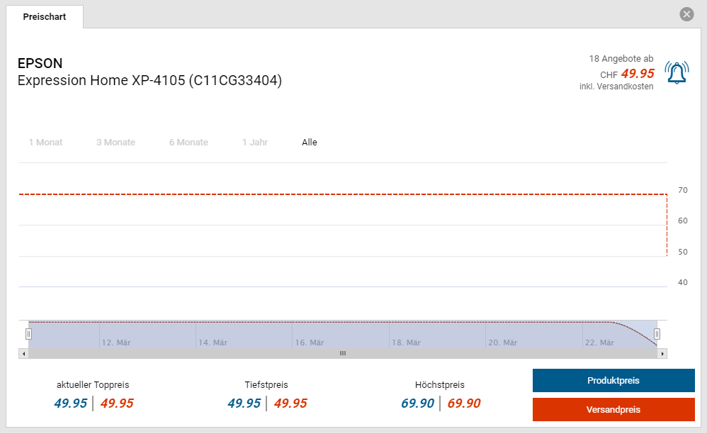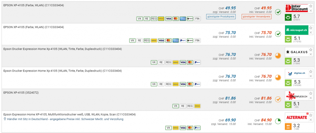 Bei Interdiscount gibt es den EPSON Expression Home XP-4105 Drucker für den neuen Bestpreis von CHF 49.95. Der zweitbeste Preis beträgt CHF 75.70 und der vorherige Bestpreis war CHF 69.90.