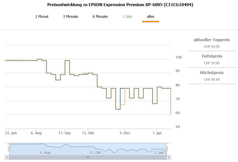 Gemäss toppreise war der bestprice bislang bei 63.90 CHF, der zweitbeste Preis liegt aktuell bei 78.95 CHF.
