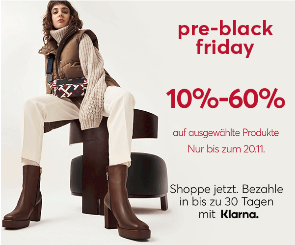 eschuhe.ch startet mit einem pre-black friday. Bis zum 20.11.22 gibt es 10% - 60% Rabatt auf ausgewählte Produkte.