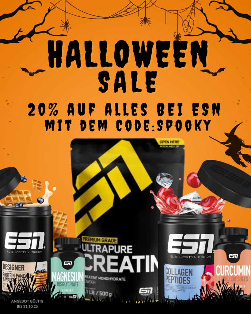 Gerade läuft bei ARB Nutrition ein richtig starker Halloween Sale auf alle ESN Produkte – egal ob Proteinpulver, Isoclear, Designer Whey, oder Protein Bars.