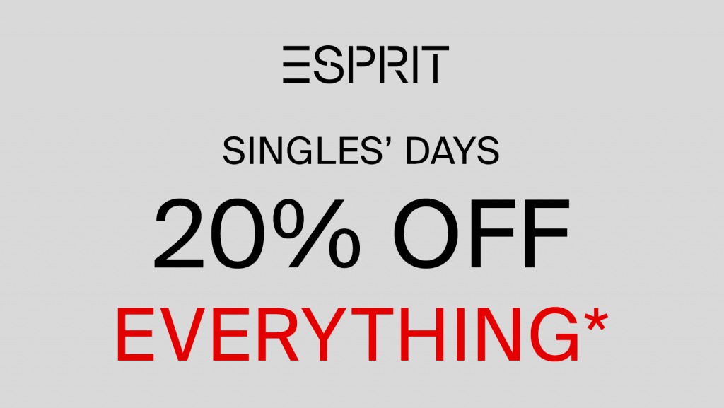 Zum Singles Day gibt es bei Esprit 20% Rabatt NUR für ESPRIT Friends! Mit Voucher Code HAPPYSINGLES jetzt profitieren!