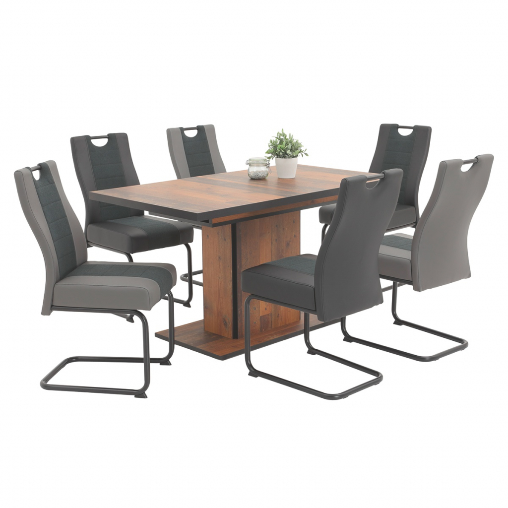 Der Esstisch kann für 6 Personen, oder durch die Verlängerungsoption, für 8 Personen genutzt werden.