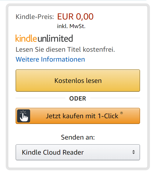 Das Etherum Handbuch hat 4.7/5 Bewertungen bei 63 Bewertungen. Um zu profitieren, kontrolliere zuerst ob der Kindle-Preis immer noch 0.00 EUR ist und klicke anschliessend auf jetzt kaufen mit 1-Click. Klicke nicht auf den Button „kostenlos testen“ da Amazon dort ein Probeabo für Kindle unlimited verkaufen möchte. Das Etherum Handbuch ist auch ohne Kindle unlimited gratis. Wie immer bei gratis eBooks gilt: Der Preis kann schnell wieder nach oben angepasst werden. Deshalb schnell herunterladen.
