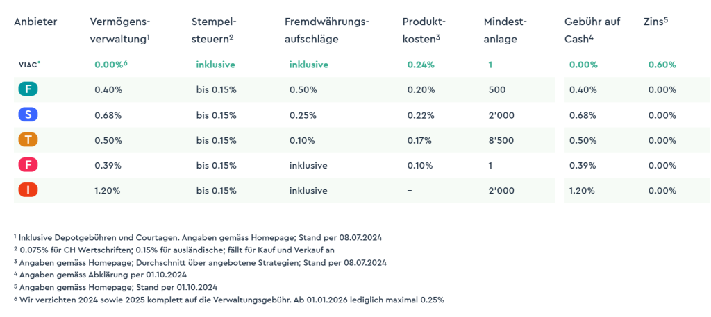 Eine gute Überlegung - persönlich denke ich auch, dass FinPension und VIAC aktuell in etwa gleichauf sind. Sprich: Die preisgünstigsten Anbieter auf dem Markt für CH-Robo-Advisors.