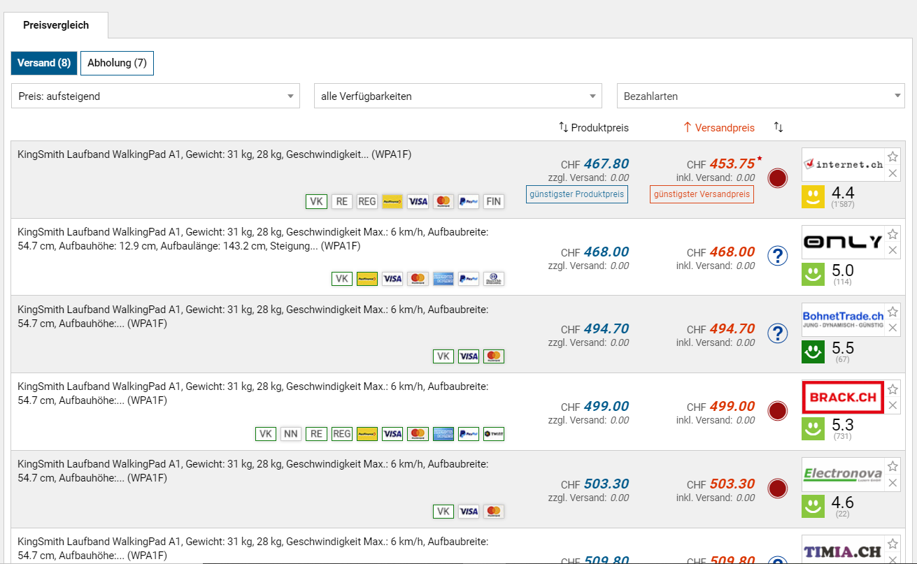 Bei Daydeal gibts derzeit das faltbare Laufband Walking Pad A1 von Kingsmith zum Aktionspreis von 399 Franken. Laut toppreise soll der Vergleichspreis bei CHF 468.- liegen. Die einstellbare Höchstgeschwindigkeit liegt aber nur bei mickrigen 6 km/h.