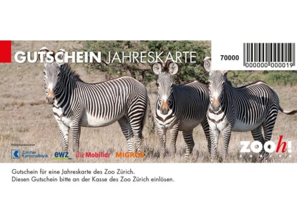 Gültig für den Eintritt in den Zoo Zürich während einem Jahr lang. (Eintritt für eine Person und Lebenspartner inkl. eigenen Kindern 6 - 15 Jahre)