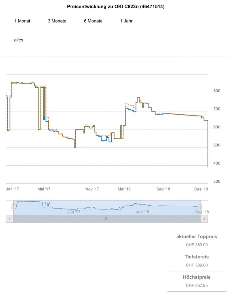 Bei arp gibt es aktuell den Farblaser OKI C823n für 389.- CHF.
