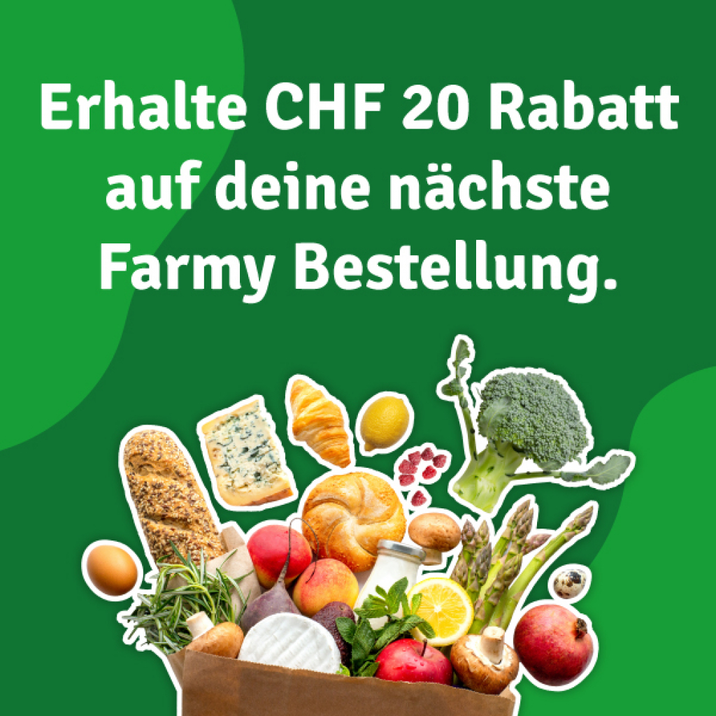 Erhalte CHF 20 Rabatt auf deine nächste Farmy-Bestellung mit dem Code* FARMYPIRAT