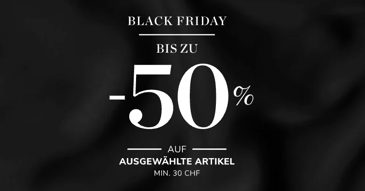 Von Montag, 24.11, bis Freitag, 28.11.205 finden bei Manor die Black Days statt. Es gibt 10 % bis 50 % Rabatt auf ausgewählte und gekennzeichnete Artikel – vorausgesetzt, die Manor Karte wird verwendet. Die Aktion gilt für Damen-, Herren- und Kindermode sowie für Sportartikel und viele weitere Kategorien.