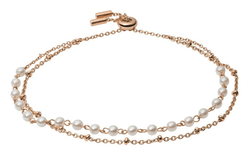 FOSSIL Drew Glasperlen-Edelstahl-Armband in Rose Gold in der Grösse M (verstellbar) für CHF 25.30 anstatt CHF 50.60