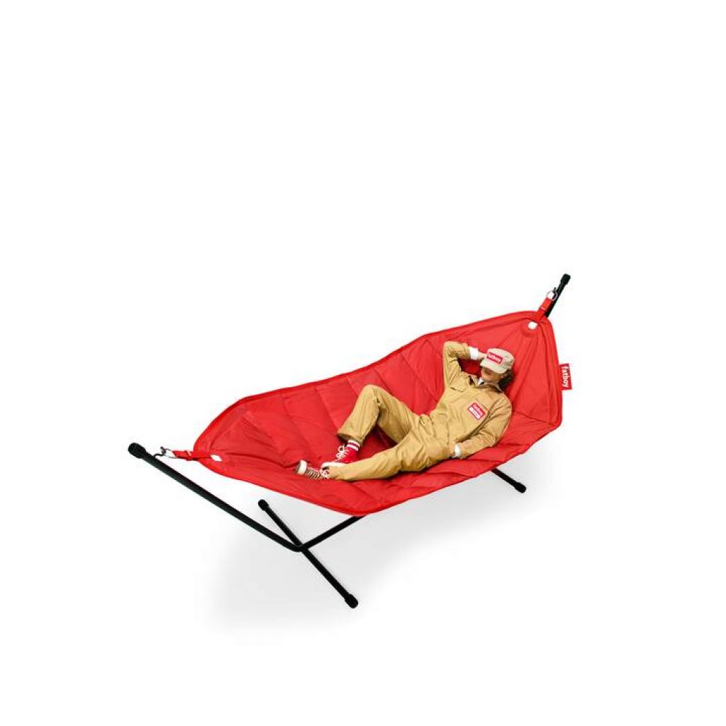 Die Hängematte bietet im typisch extravaganten oversized Fatboy Design Platz für mehrere Personen. Sie ist luxuriös, weich gepolstert und kommt ganz ohne Bäume oder Seile aus: die Matte selbst wird an einem stabilen pulverbeschichtetem Rahmen aufgehängt, so dass sich jeder im Garten oder auf der Terrasse einen persönlichen Lieblingsplatz zum „Abhängen“ schaffen kann. Headdemock ist aus langlebigen Materialien gefertigt und sorgt mit wasserabweisendem und UV-beständigem Stoff jahrelang für richtig viel Liegeluxus. Und wenn der Sommer doch mal endet, werden Matte und Gestell einfach zusammengeklappt und in zweckmässigen Taschen verstaut, bis das warme Wetter zurück gekehrt ist.