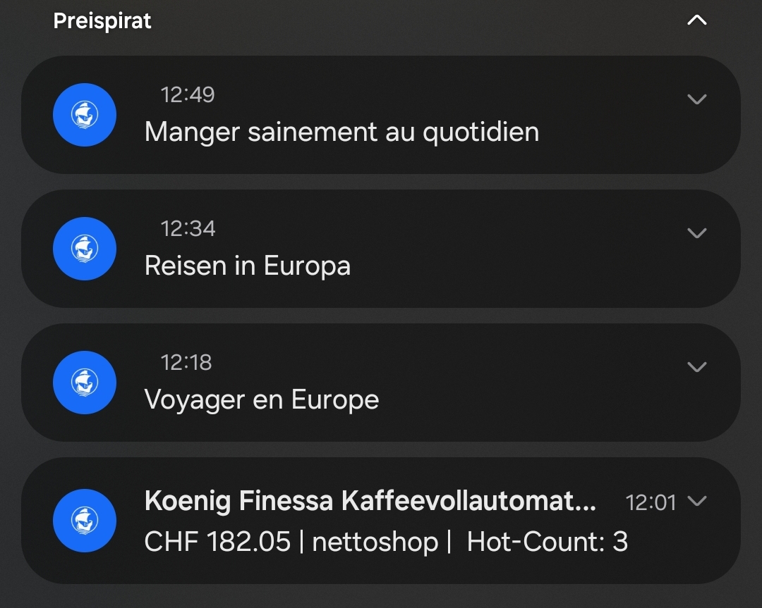 Das fängt wieder an mit den Benachrichtigungen auf Französisch, Europa-Deal. Bitte schaltet es ab, es stört...
