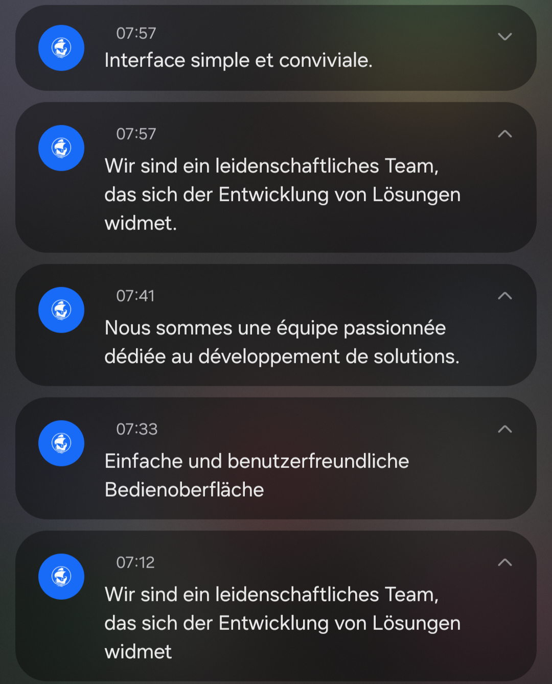 Wir sind zwar wirklich “ein leidenschaftliches Team, das sich der Entwicklung von Lösungen widmet”. Allerdings waren diese Nachrichten nicht dazu gedacht, an alle User verschickt zu werden. Wie ihr sehen könnt, sind auch ein paar französische Nachrichten mit dabei…