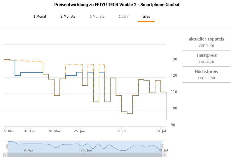 Lasst euch davon nicht verwirren, denn seit heute gibt es ein neuen best price für den Gimbal und dieser ist nicht von digitec, sondern bei besttrading.ch für 94.- CHF.