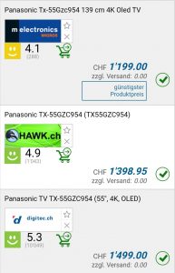 Weniger als CHF 1000 fur einen 55′ OLED TV von Panasonic. Der Bestpreis bis jetzt war die Aktion bei Melectronics (CHF 1199). Sonst kostet dieser Fernseher gegen CHF 1400.