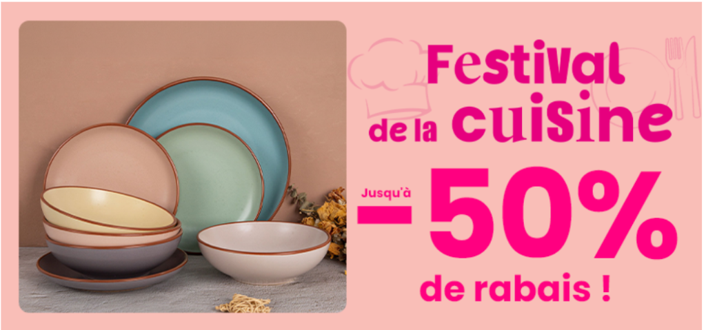Conforama feiert das “Festival de la cuisine” mit bis zu 50% Rabatt auf über 415 Küchenartikel! Von Geschirrsets über Salatschüsseln bis hin zu Kochutensilien – verwandeln Sie Ihre Küche in ein kulinarisches Paradies. Entdecken Sie hochwertige Produkte zu unschlagbaren Preisen und statten Sie Ihre Küche komplett neu aus!