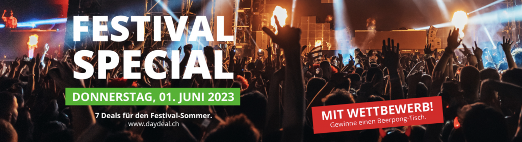 Heute gibt’s bei DayDeal.ch das Festival-Special zur Einstimmung auf den Festival-Sommer mit 7 praktischen Schnäppchen.